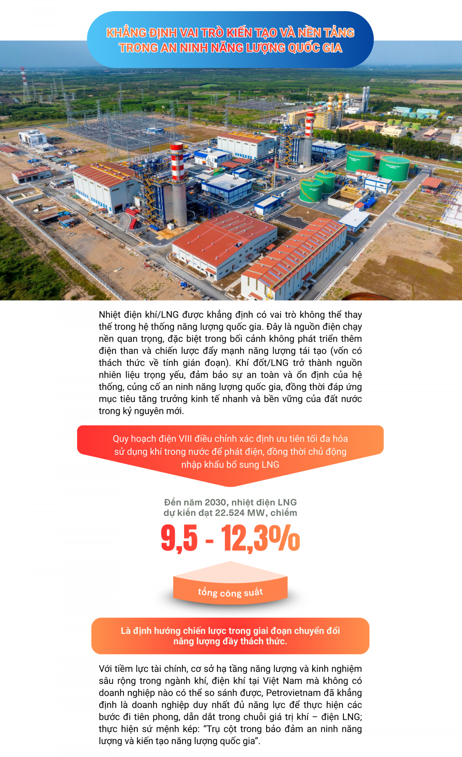 Tiên phong với LNG Thị Vải, Petrovietnam tiếp tục mở đường khi vận hành các nhà máy điện khí LNG đầu tiên, hoàn thiện chuỗi giá trị khí – điện LNG khép kín của Việt Nam.