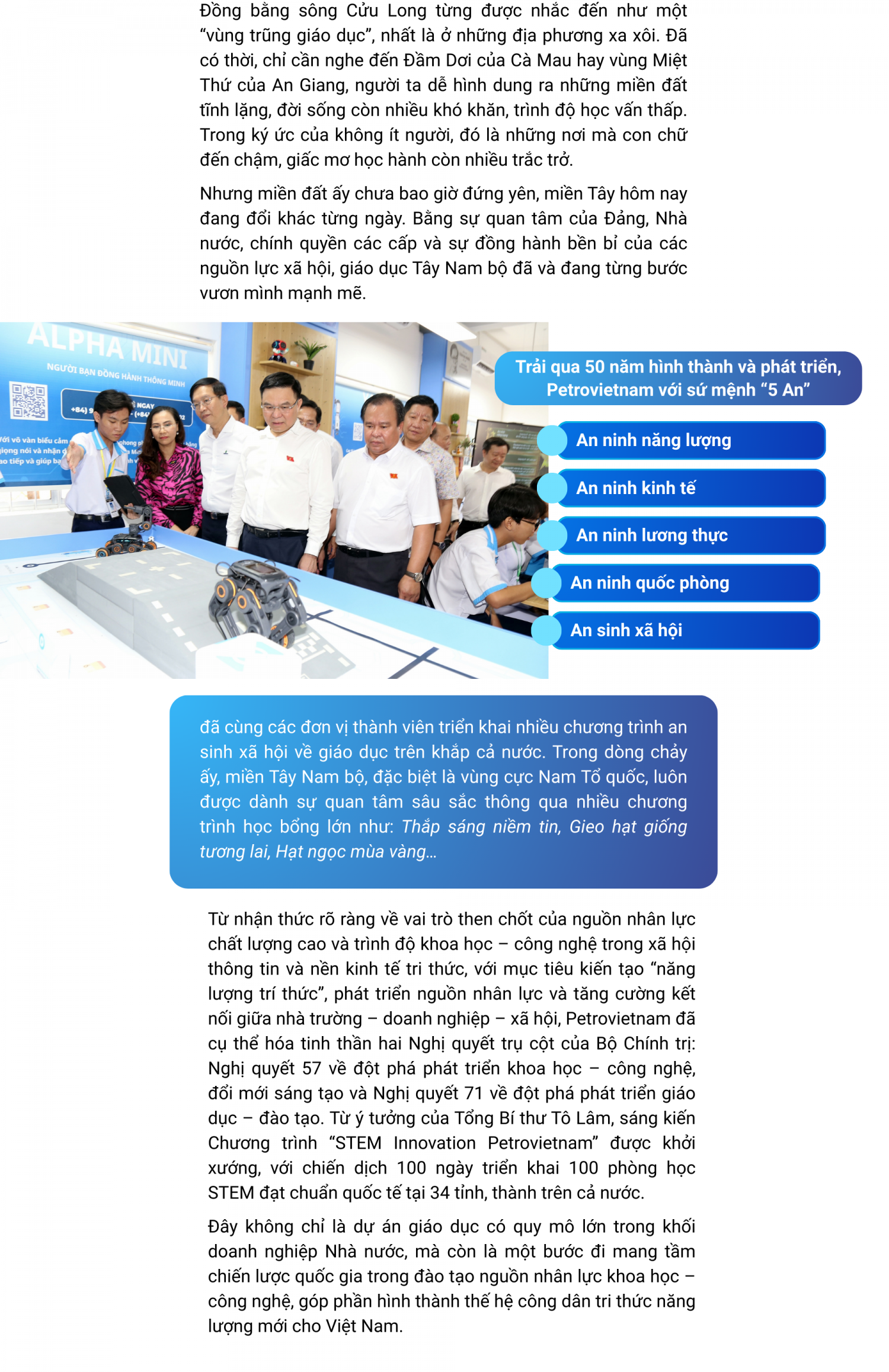 Những ngày cuối năm, tại các ngôi trường trọng điểm của khu vực Tây Nam bộ, niềm vui hiện rõ trên gương mặt thầy cô và học sinh khi các phòng thực hành STEM do Petrovietnam và các đơn vị thành viên tài trợ chính ...
