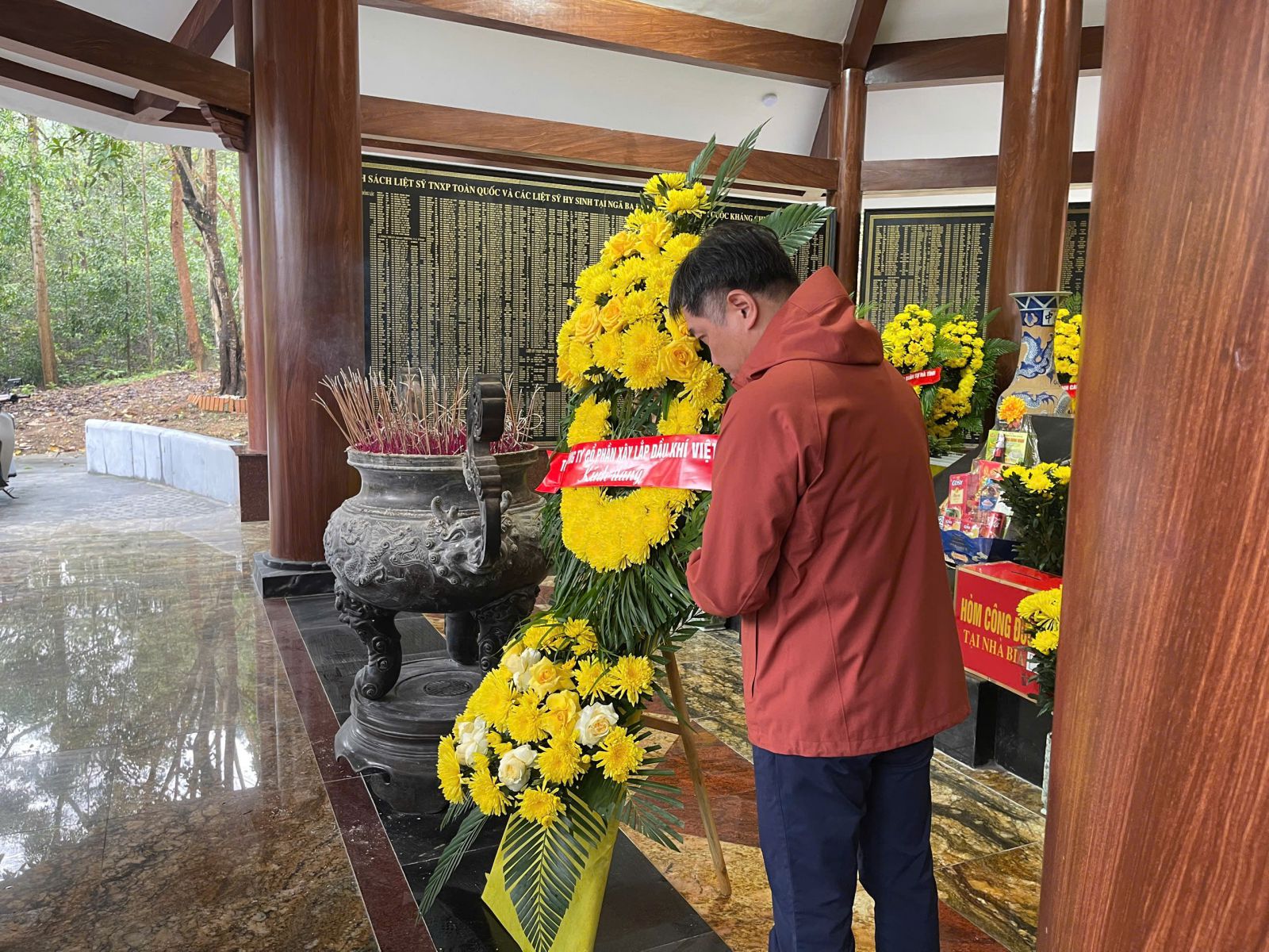 Đồng chí Nghiêm Quang Huy - Bí thư đảng ủy, Chủ tịch HQĐQT thay mặt Lãnh đạo và CBNV dâng hương tại khu di tích lịch sử Ngã ba Đồng Lộc