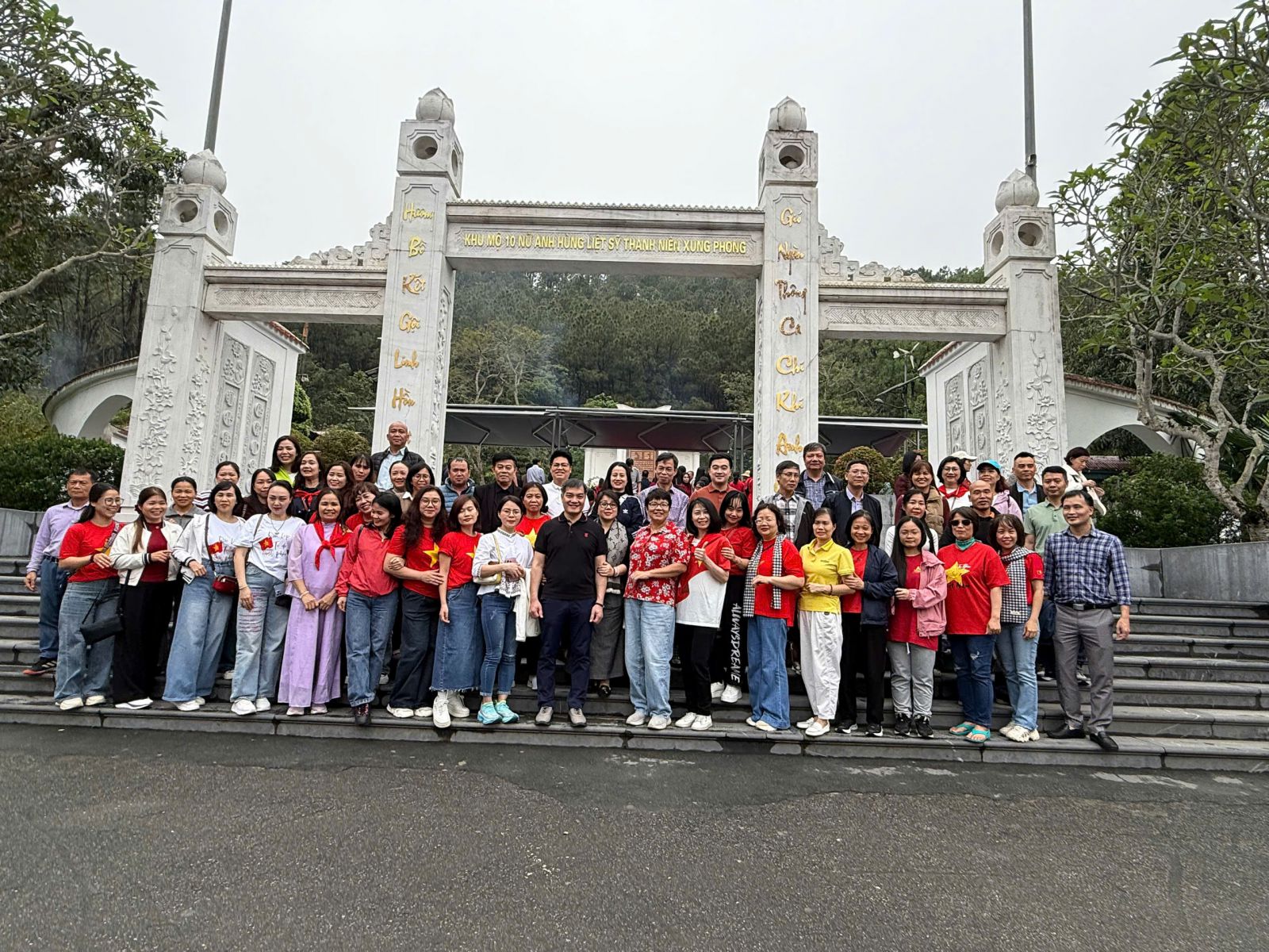 Sáng ngày 06/3/2026, đoàn xuất phát từ Hà Nội, bắt đầu hành trình về với địa chỉ đỏ giàu ý nghĩa lịch sử. Điểm dừng chân đầu tiên là Khu di tích lịch sử Ngã ba Đồng Lộc, nơi đoàn thành kính dâng hương tưởng niệm 10 nữ thanh niên xung phong anh hùng đã anh dũng hy sinh vì sự nghiệp giải phóng dân tộc. Trong không khí trang nghiêm, các thành viên trong đoàn đã bày tỏ lòng biết ơn sâu sắc trước sự hy sinh cao cả của các thế hệ đi trước.