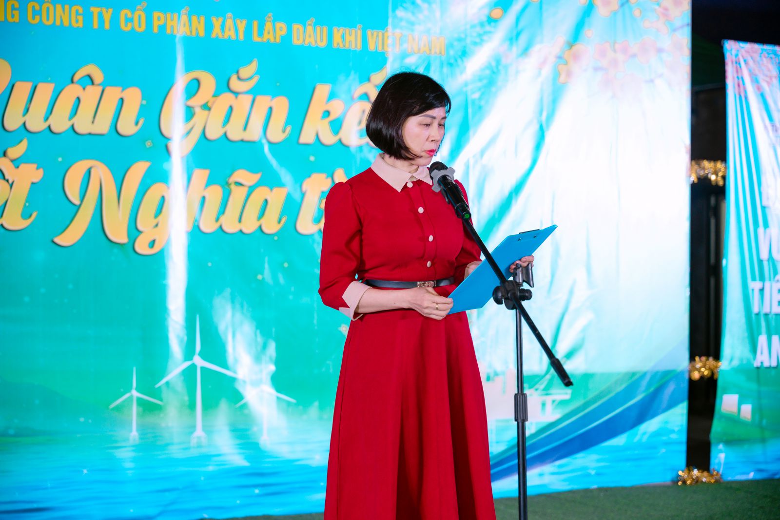 Thay mặt Ban chấp hành Công đoàn Tổng công ty, đồng chí Nguyễn Thị Thu Hường gửi tới toàn thể cán bộ, đoàn viên công đoàn và người lao động lời chúc mừng năm mới sức khỏe, hạnh phúc và an khang. Chương trình là hoạt động ý nghĩa, thể hiện sự quan tâm, trách nhiệm và tinh thần sẻ chia của Tổng công ty đối với người lao động. Mong rằng trong không khí ấm áp của mùa xuân mới, mỗi chúng ta tiếp tục đoàn kết, đồng lòng, nỗ lực thi đua lao động sản xuất, góp phần xây dựng Tổng công ty ngày càng phát triển bền vững.