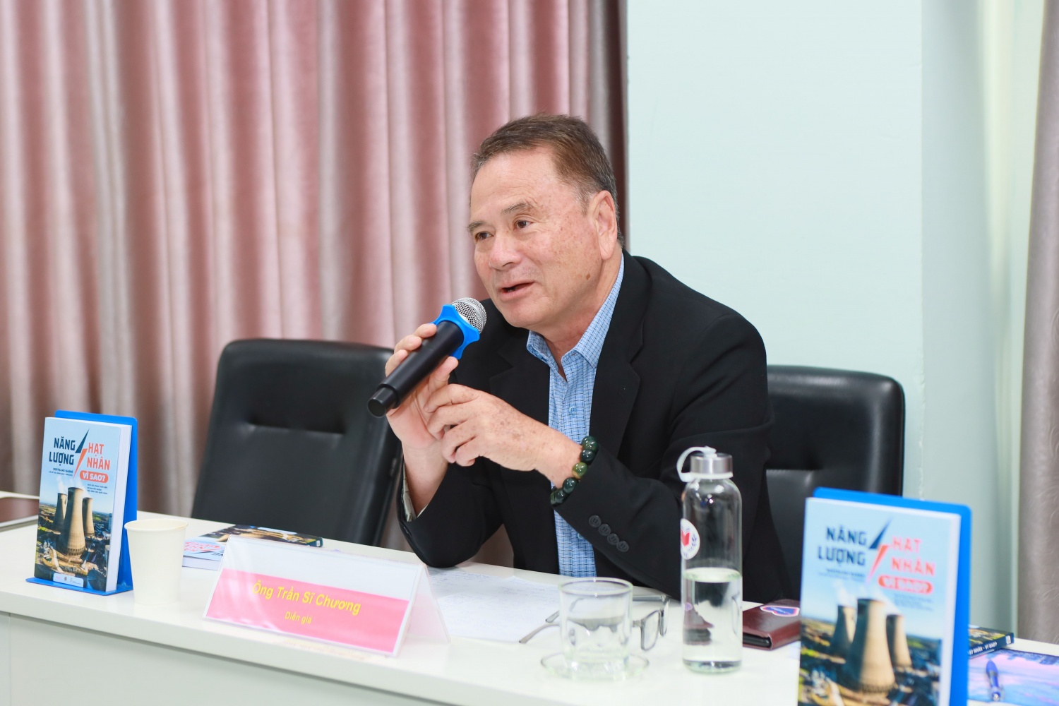 Các diễn giả tại toạ đàm bao gồm: T.S Phạm Tuấn Hiệp – chuyên gia Tập đoàn Điện lực Pháp (EDF), Tổng Thư ký VietNuc, dịch giả cuốn sách Năng lượng hạt nhân - Vì sao?; TS. Lê Anh Vân – Phó Hiệu trưởng