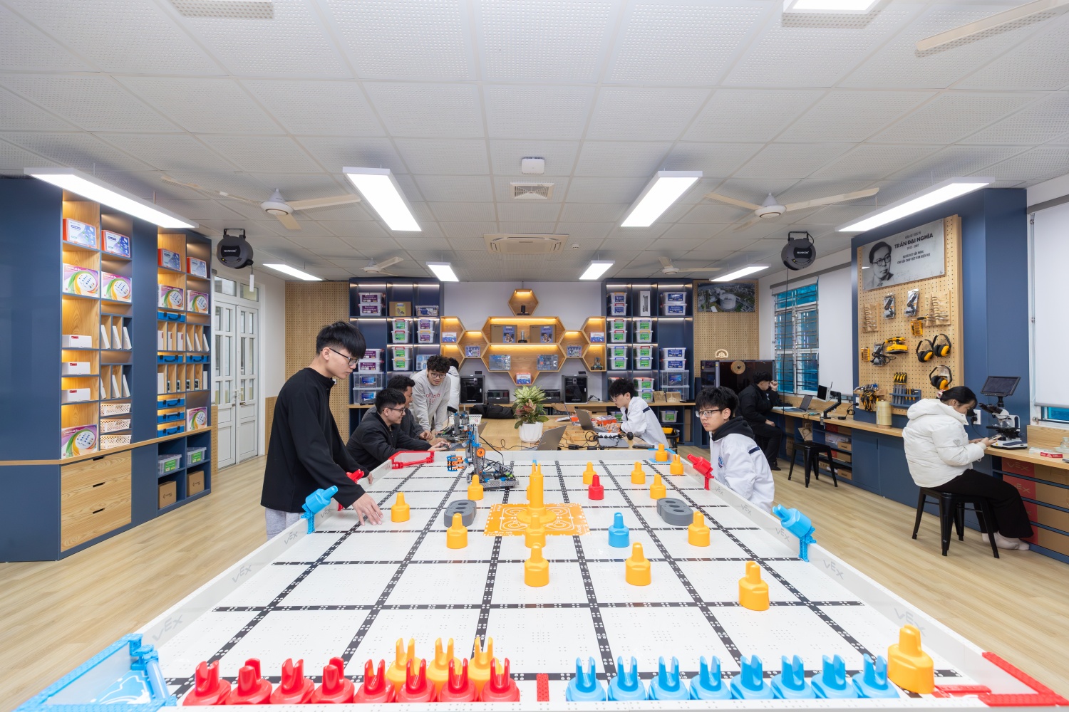 Bước chân vào phòng thực hành giáo dục STEM Innovation Petrovietnam tại Trường THPT Chuyên Thái Bình, thầy cô và các học sinh không khỏi trầm trồ trước một không gian hiện đại, được thiết kế tối ưu cho việc học tập và nghiên cứu khoa học. Phòng học được trang bị hệ thống máy tính cấu hình cao, bộ kit lắp ráp robot, máy in 3D, kính thực tế ảo (VR/AR) và các phần mềm mô phỏng thí nghiệm tiên tiến. Đây không chỉ là sự hỗ trợ về vật chất, mà là sự hiện thực hóa giấc mơ tiếp cận tri thức hiện đại cho thầy trò trường chuyên Thái Bình.