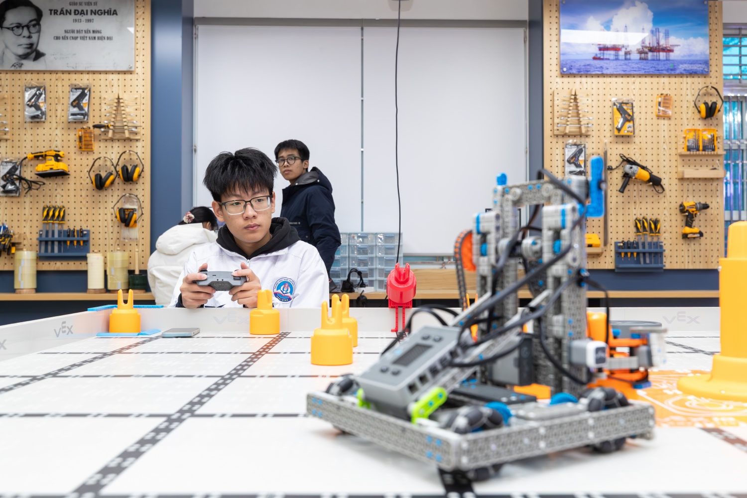 Từ góc độ nhiều năm hướng dẫn học sinh nghiên cứu khoa học, thầy Nguyễn Thanh Sơn, Tổ trưởng Tổ Nghiên cứu khoa học Trường THPT Chuyên Thái Bình chia sẻ, trước đây, nhà trường có phòng lab phục vụ nghiên cứu khoa học nhưng chỉ như một “xưởng cơ khí”, tập trung cho Robotics, chưa phải là một không gian STEM đúng nghĩa. Từ khi có phòng STEM Innovation Petrovietnam, điều dễ nhận thấy nhất là sự hứng thú của học sinh tăng lên rõ rệt. Phòng được đầu tư bài bản, trang thiết bị hiện đại và đầy đủ cho hoạt động STEM ở bậc phổ thông. Với cơ sở vật chất như vậy, nếu được tổ chức tốt, học sinh hoàn toàn có thể tạo ra những sản phẩm nghiên cứu khoa học chất lượng, bài bản.