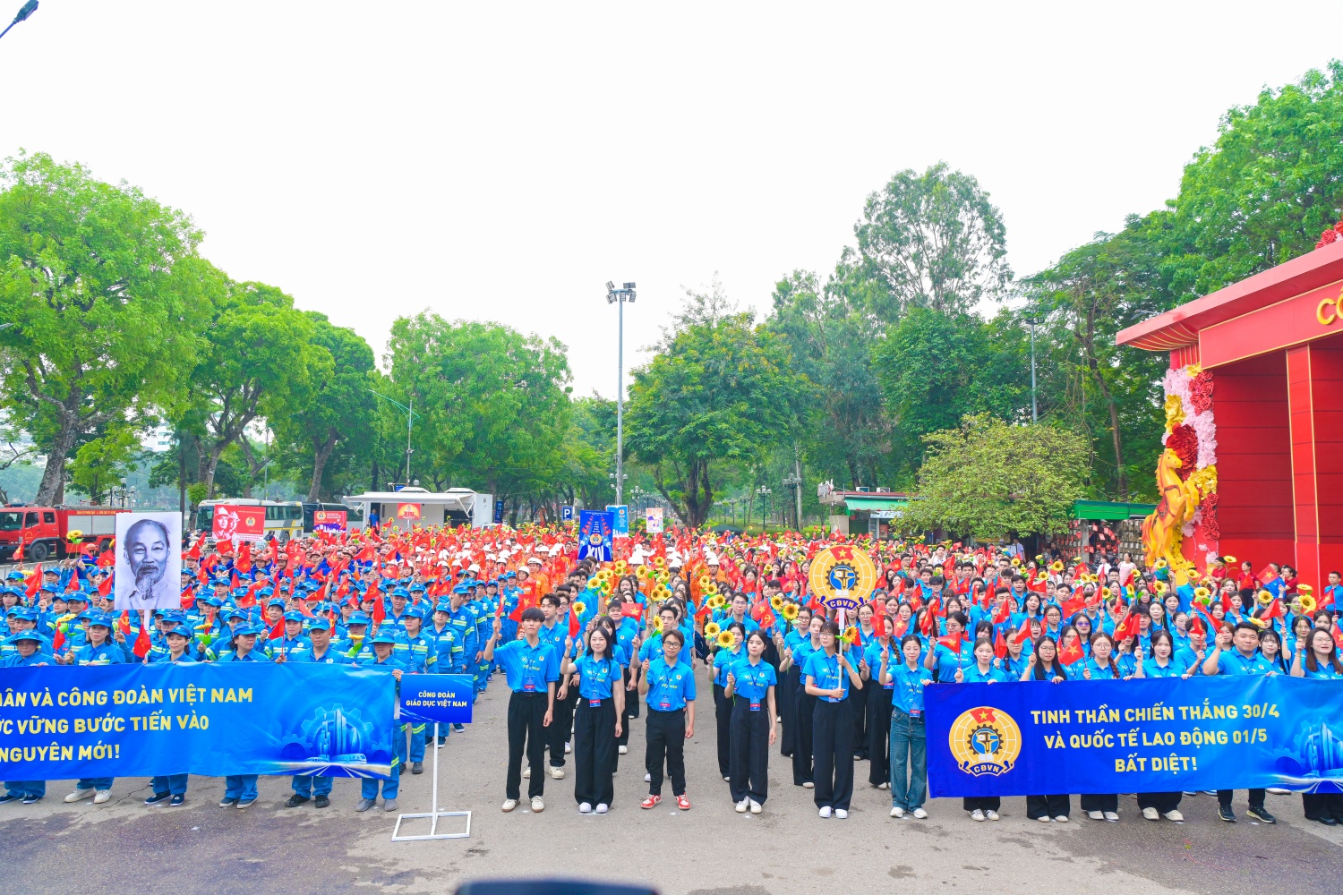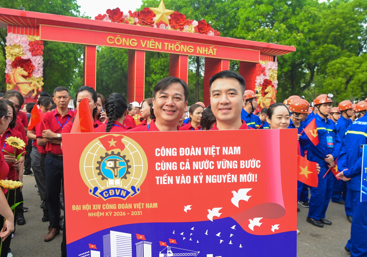 Đoàn diễu hành xuất phát từ tuyến đường Trần Nhân Tông - Trần Bình Trọng, tiến về Cung Văn hóa Lao động Hữu nghị Việt - Xô. Gần 1.000 công nhân, người lao động tiêu biểu tham gia diễu hành trong đội hình trang nghiêm, thể hiện tinh thần đoàn kết, kỷ luật và khát vọng vươn lên trong thời kỳ mới.