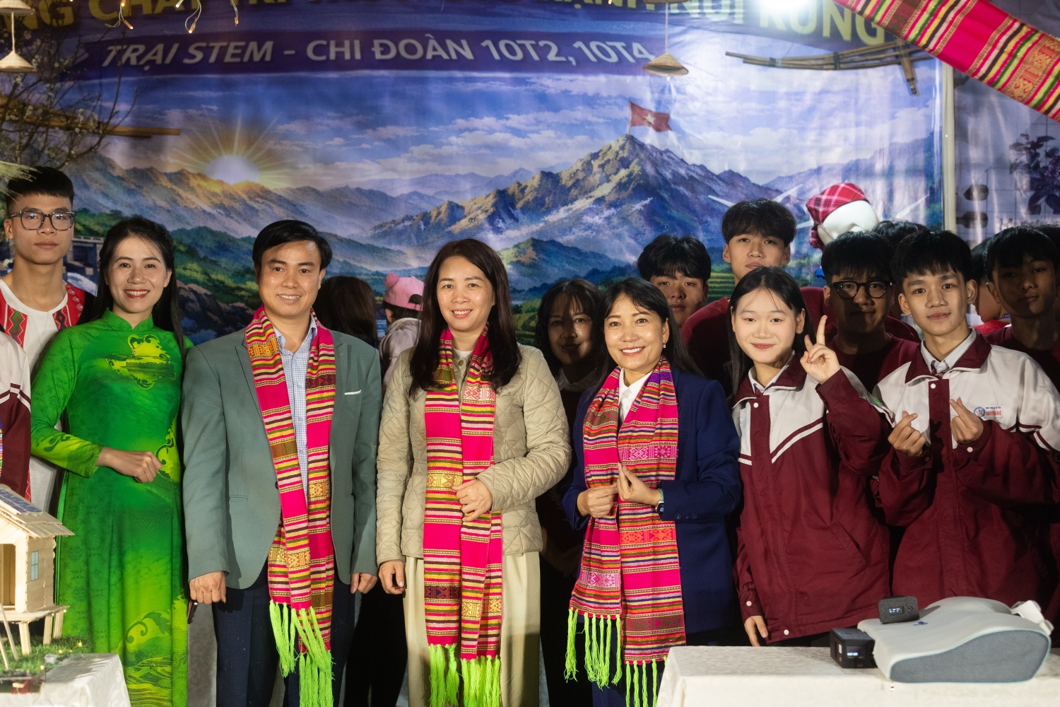 Tại điểm cầu Trường THPT Nguyễn Huệ (Lào Cai), giữa tiết trời giá lạnh của vùng cao Tây Bắc, không gian “Ngày hội STEM – Xuân Lào Cai” lại rực nóng bởi điệu nhảy sạp truyền thống và sự háo hức của hơn 500 học sinh, giáo viên và sự độc đáo của các sản phẩm STEM của học sinh vùng Tây Bắc. Tại đây, phòng học STEM do Petrovietnam đầu tư không chỉ phục vụ riêng nhà trường, mà đã trở thành hạt nhân lan tỏa STEM cho cả khu vực, hỗ trợ chuyên môn cho nhiều trường phổ thông lân cận.