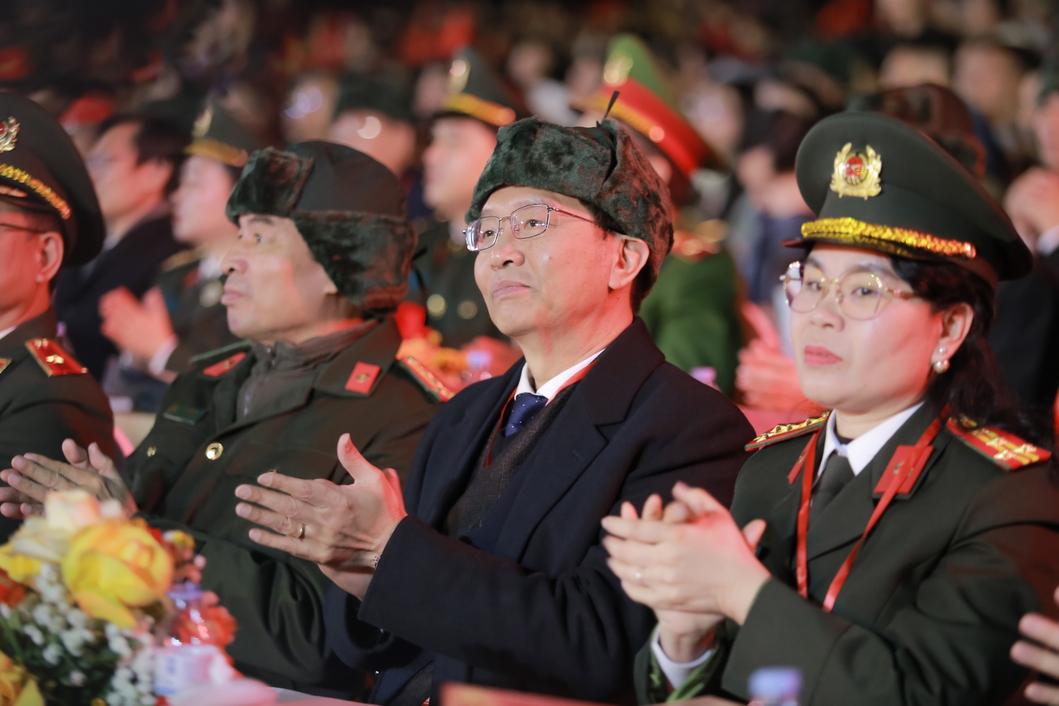 Cùng dự tại các điểm cầu có các đồng chí: Ủy viên Bộ Chính trị, nguyên Ủy viên Bộ Chính trị, Ủy viên Ban Bí thư, nguyên Ủy viên Ban Bí thư, Ủy viên Trung ương Đảng, nguyên Ủy viên Trung ương Đảng; các đồng chí lãnh đạo, nguyên lãnh đạo Đảng, Nhà nước, Mặt trận Tổ quốc Việt Nam; lãnh đạo ban, bộ, ngành Trung ương, các địa phương; các đồng chí lão thành cách mạng, các Mẹ Việt Nam Anh hùng, cán bộ đảng viên và đông đảo nhân dân các tỉnh, thành phố tại các điểm cầu.