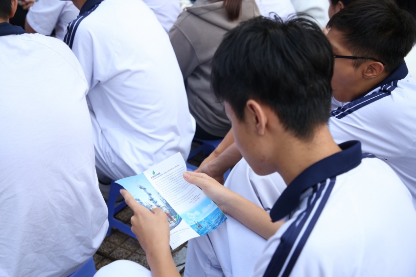 Để giúp các em học sinh có cái nhìn chi tiết và hệ thống nhất, Ban tổ chức đã tiến hành phát tận tay các em bộ tờ rơi giới thiệu về Petrovietnam, cùng tài liệu tuyển sinh chuyên sâu của hai cơ sở đào tạo là Trường Đại học Dầu khí Việt Nam (PVU) và Trường Cao đẳng Dầu khí (PV College).