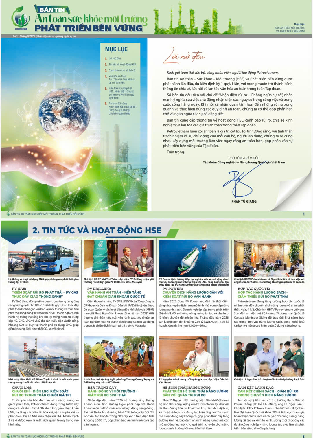 Trong bối cảnh yêu cầu về quản trị hiện đại, xây dựng văn hóa an toàn và phát triển bền vững ngày càng cao, Petrovietnam chính thức phát hành Bản tin An toàn – Sức khỏe – Môi trường và Phát triển bền vững (HSE), góp phần chuẩn hóa và hệ thống hóa công tác truyền thông HSE trong toàn Tập đoàn.