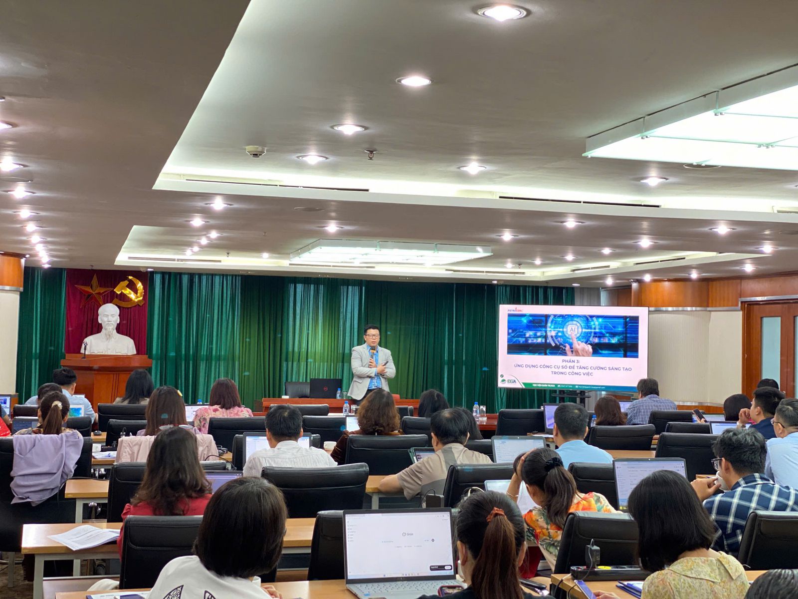 Với sự tham gia của gần 100 học viên là CBCNV thuộc PetroCons và nội dung. Chương trình học được truyền đạt bởi Thạc sỹ Nguyễn Minh Cường, chuyên gia đào tạo ứng dụng AI trong doanh nghiệp, thuộc Học viện Quản trị BSA, chương trình khóa học với những nội dung cụ thể như: Ứng dụng công nghệ số vào hoạt động Văn phòng, AI và Tầm quan trọng của AI trong CĐS; Ứng dụng công nghệ số để tăng cường tự động hóa công việc, Soạn thảo văn bản: Google Docs, Grammarly, Otter.ai, Trợ lý ảo: Mira bot, chat bot, … Quản lý dữ liệu: Thu thập, sắp xếp và phân tích dữ liệu: Google Forms,Google Sheet, …Tạo báo cáo & nhập liệu tự động: BI, Google Data Studio, …Lập lịch trình & Trợ lý cuộc họp, Thực hành các công cụ số, liên hệ thực tế; Ứng dụng công nghệ số để tăng cường sáng tạo trong công việc: Thiết kế đồ họa Canva, Mid Jouney…Nội dung, Hình ảnh, Video: Gemini, Chat GPT và An toàn và bảo mật thông tin